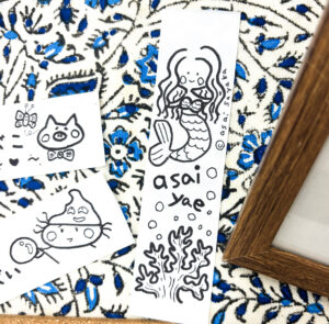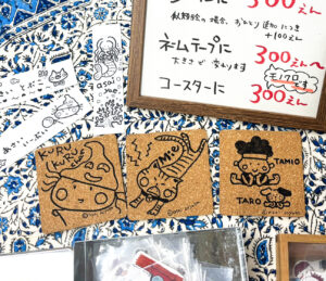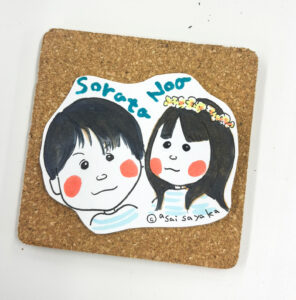 似顔絵シールやコースターなど、
