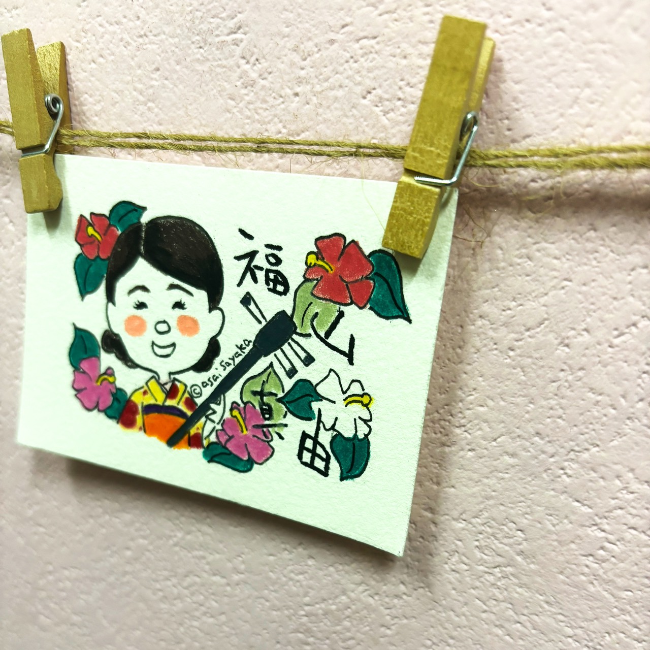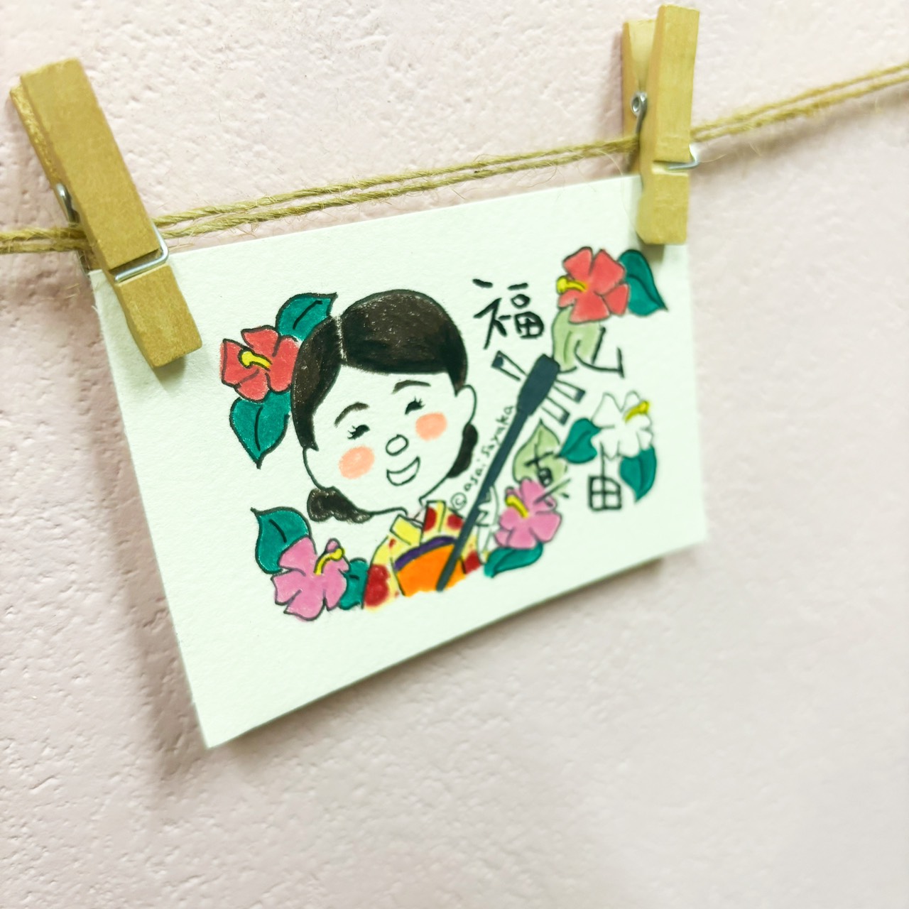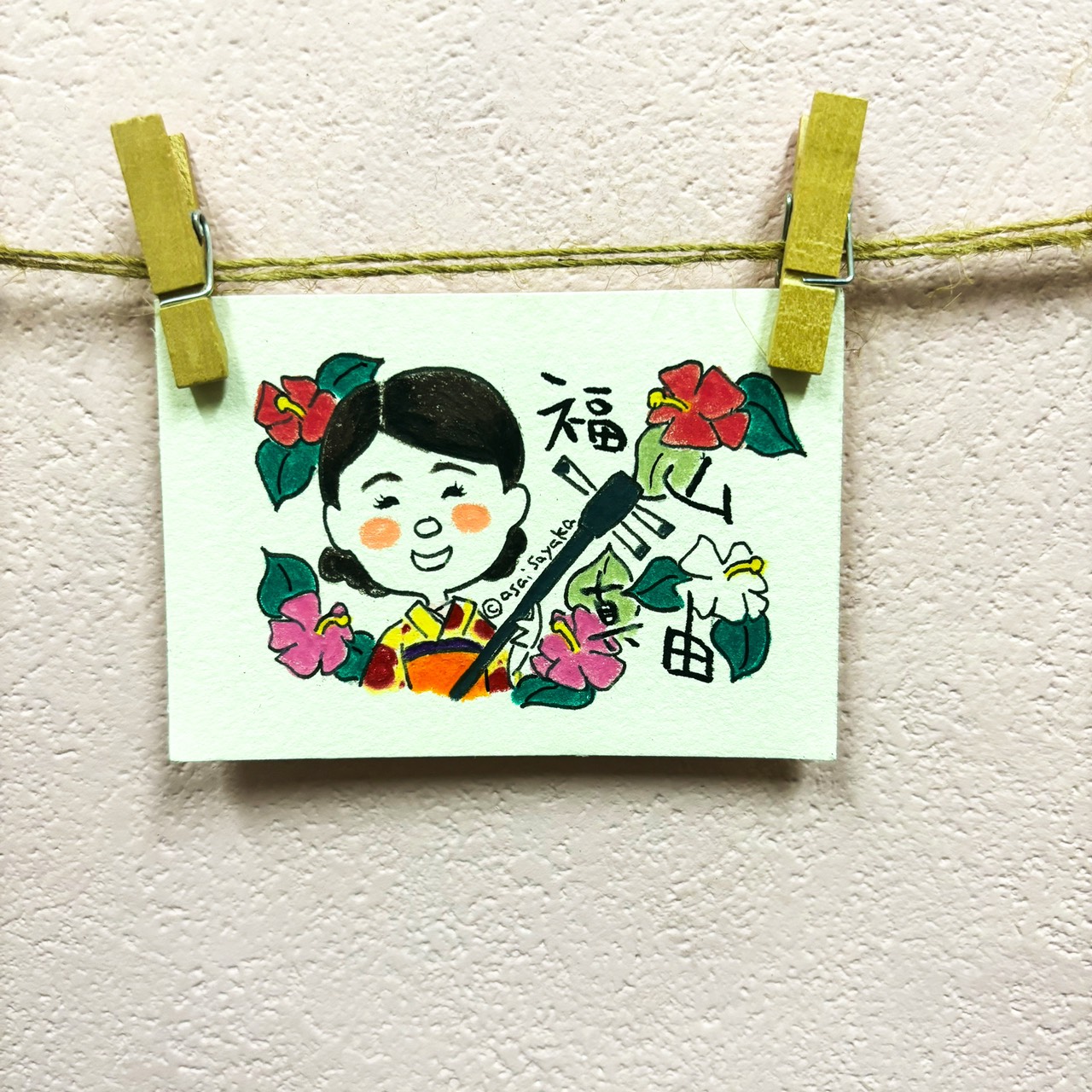三線買ってすぐに、この名札はあさいさやかさんに描いてもらおう!と決めていました。