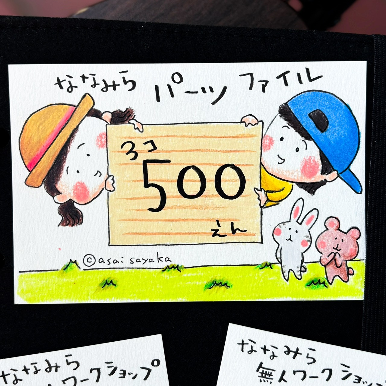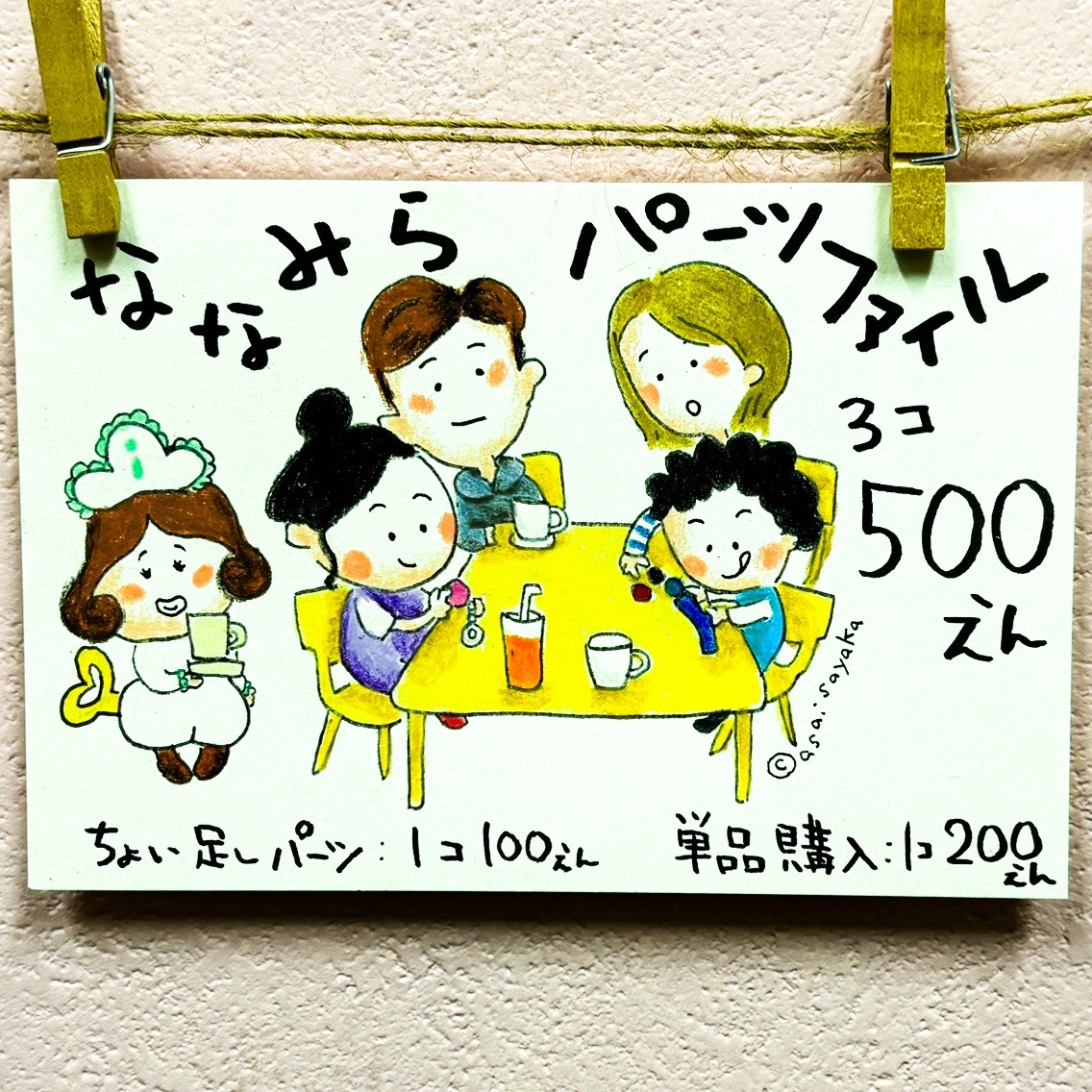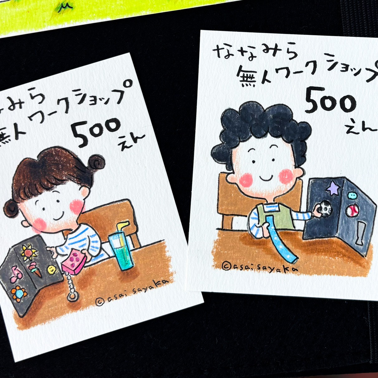 三線買ってすぐに、この名札はあさいさやかさんに描いてもらおう!と決めていました。